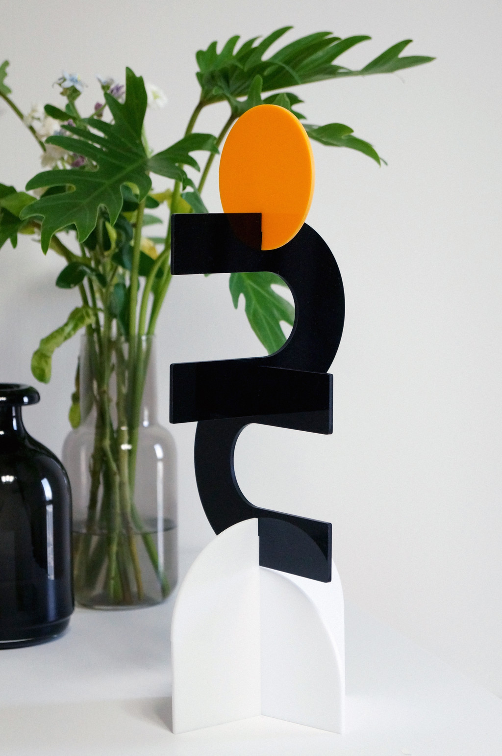 홈 액세서리 MORNING AIR SCULPTURE은 시원한 가을 아침의 공기를 표현한 오브제 입니다. 오렌지와 블랙 화이트의 색상 대비가 매력적인 오브제 입니다.