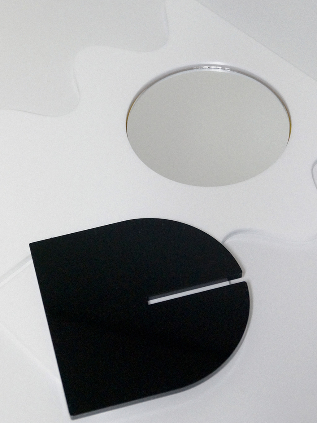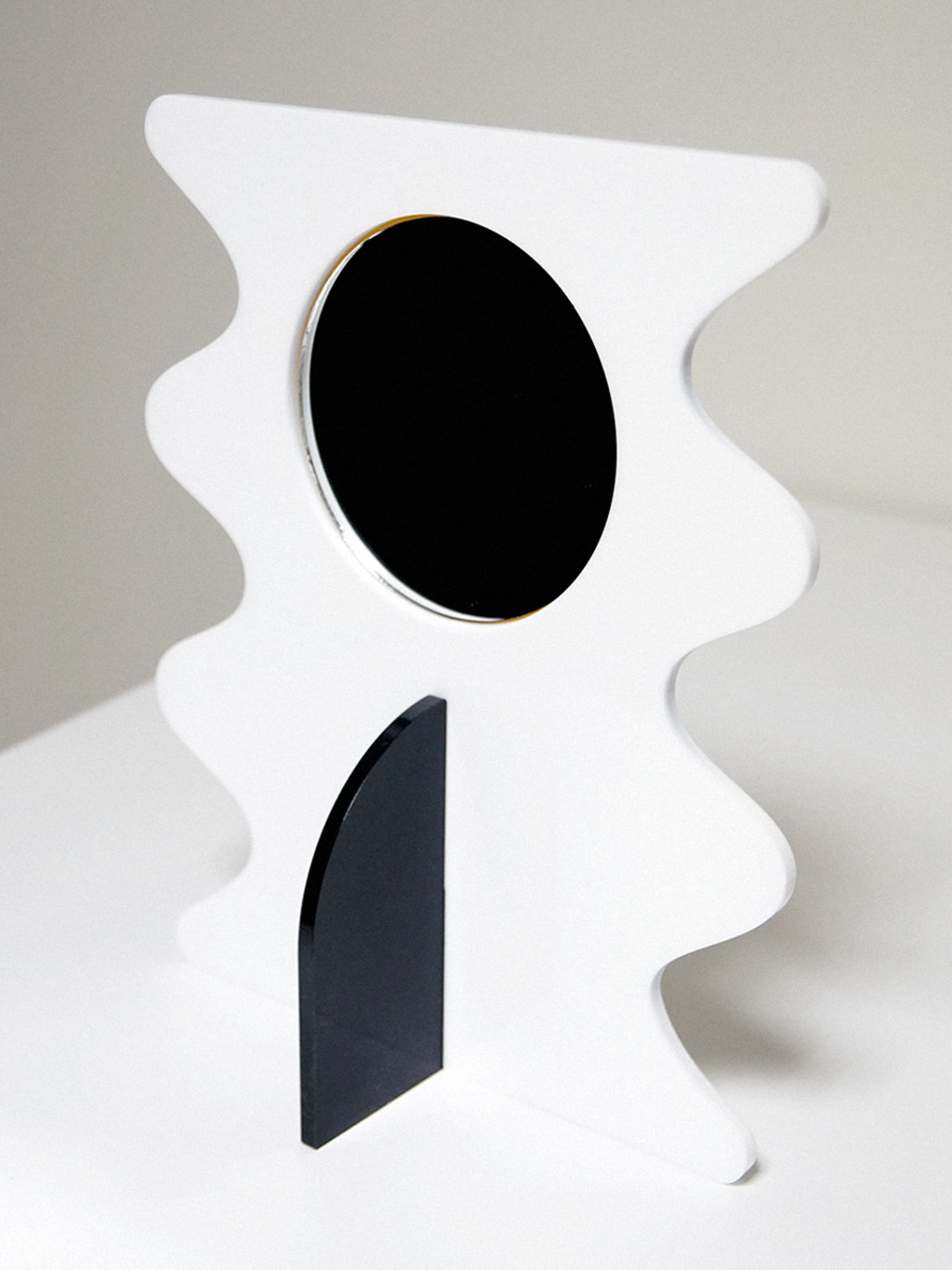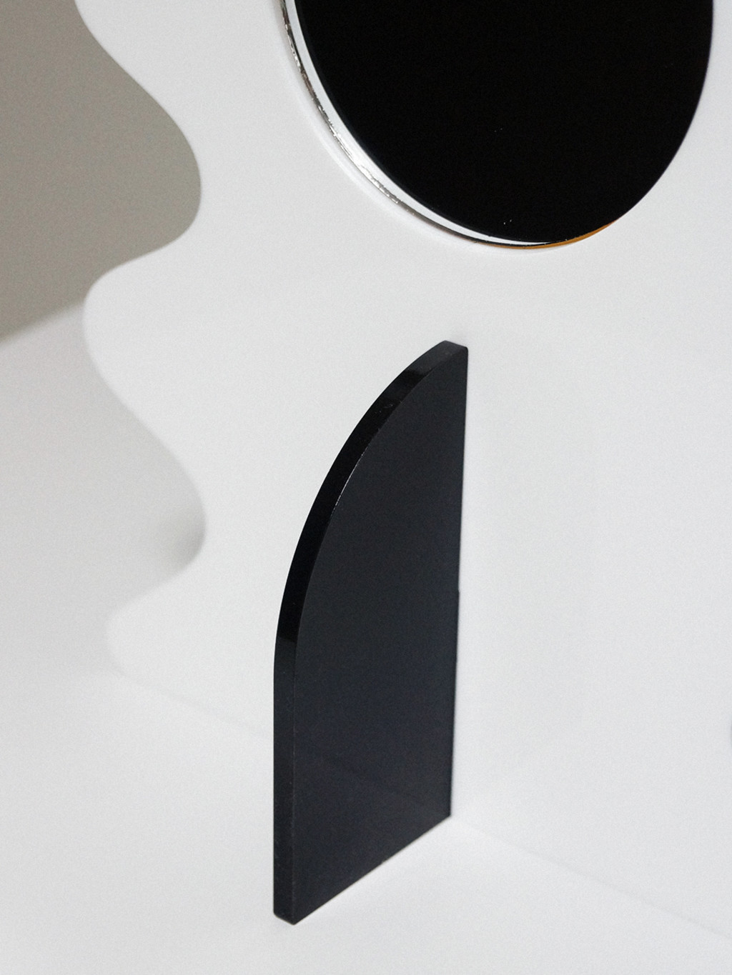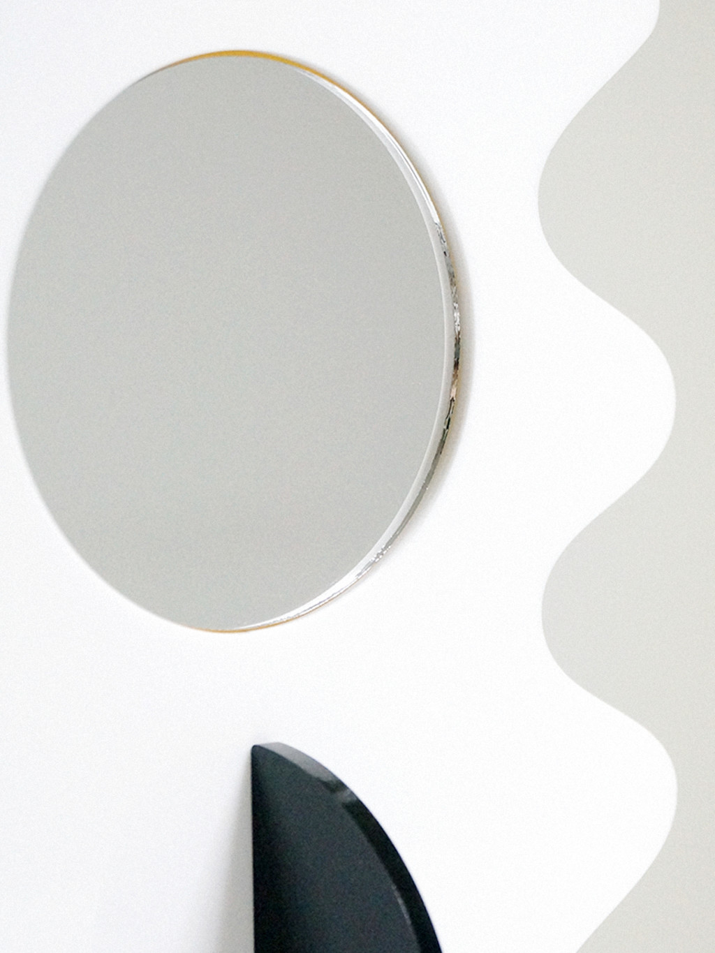 자유로운 곡선과 뒷면 오브제의 조화가 매력적인 오브제 거울입니다.