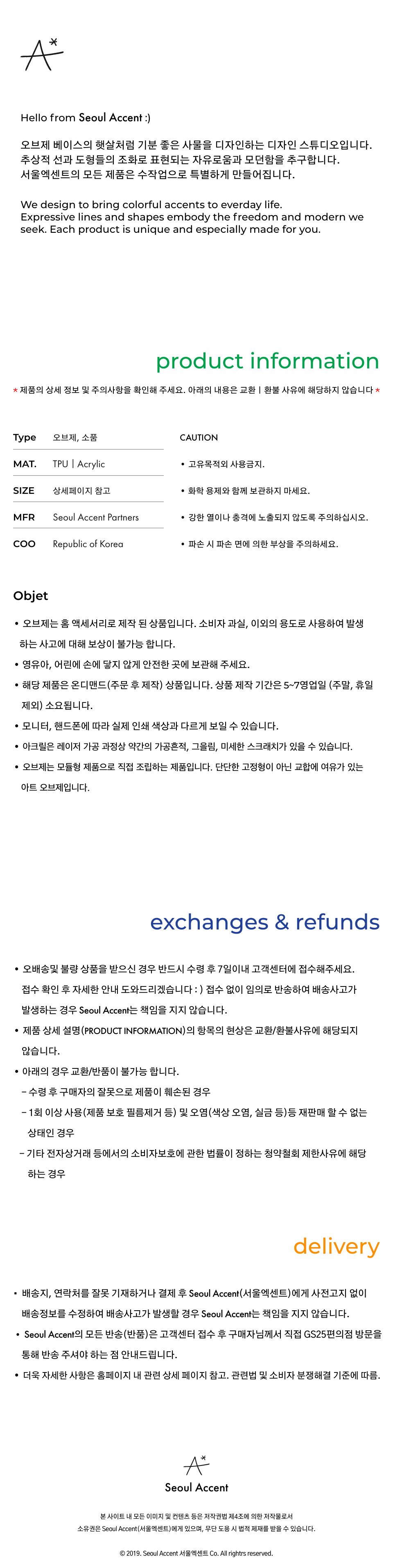 서울엑센트의 모든 제품은 온디맨드(주문 후 제작) 상품입니다. 제품별 배송준비기간을 확인해주세요 :)