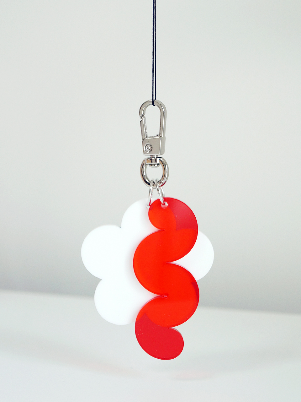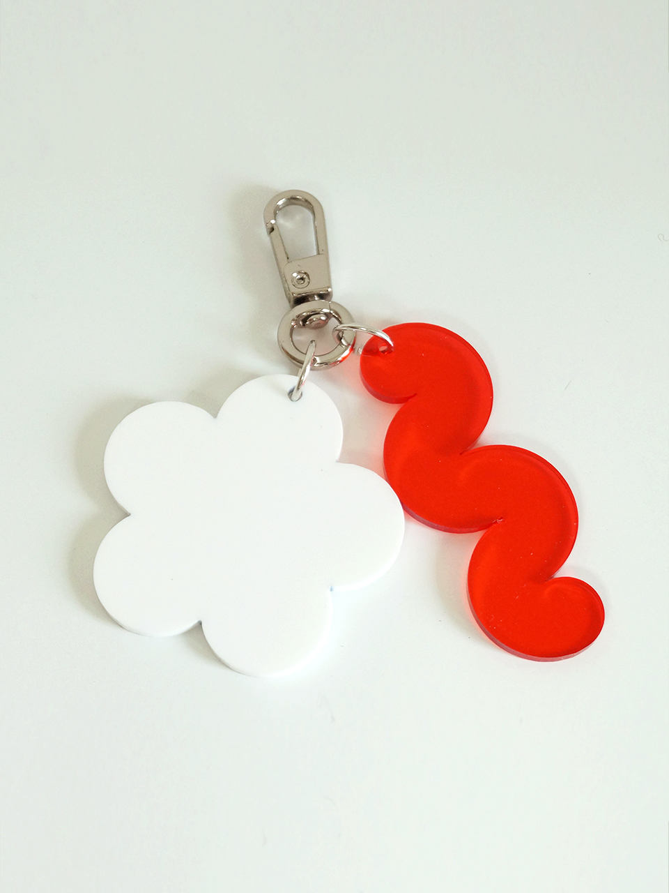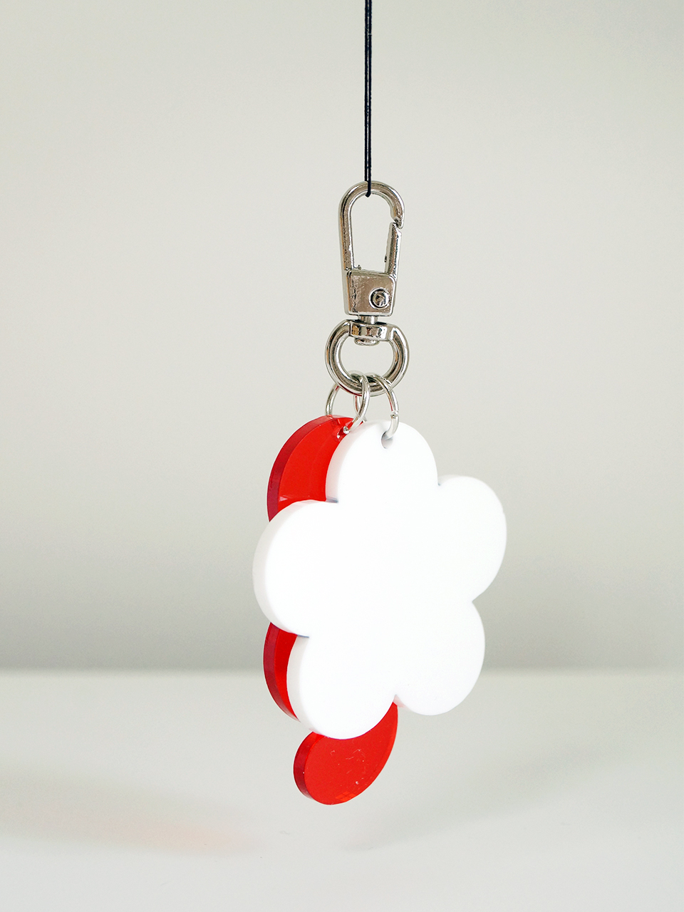 투명한 레드와 화이트 플로럴 키링의 조화는 여름 들판의