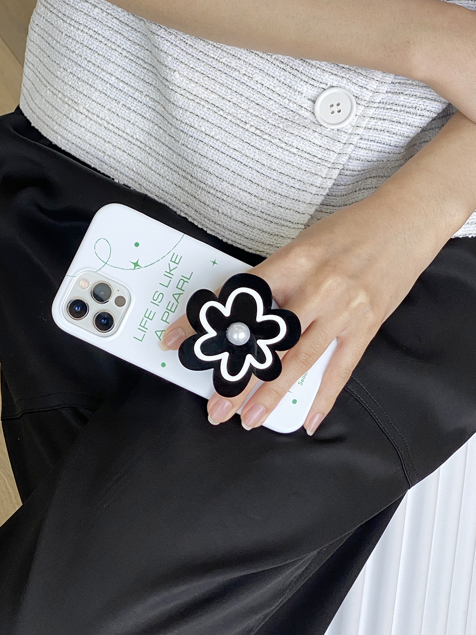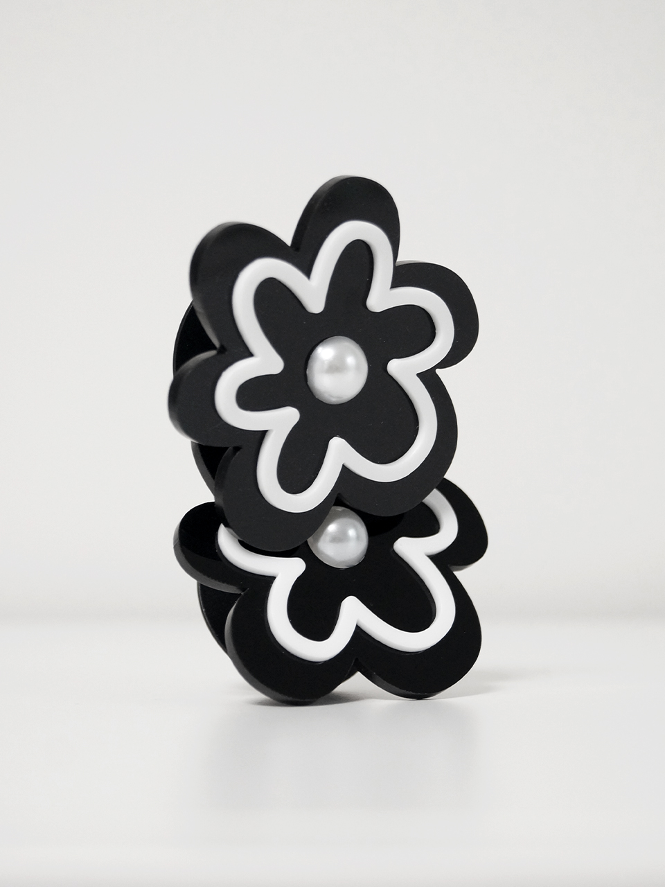 화이트 라인과 진주를 담은 검정 플로럴 요소의 조화가 매력적인 오브제톡 입니다.