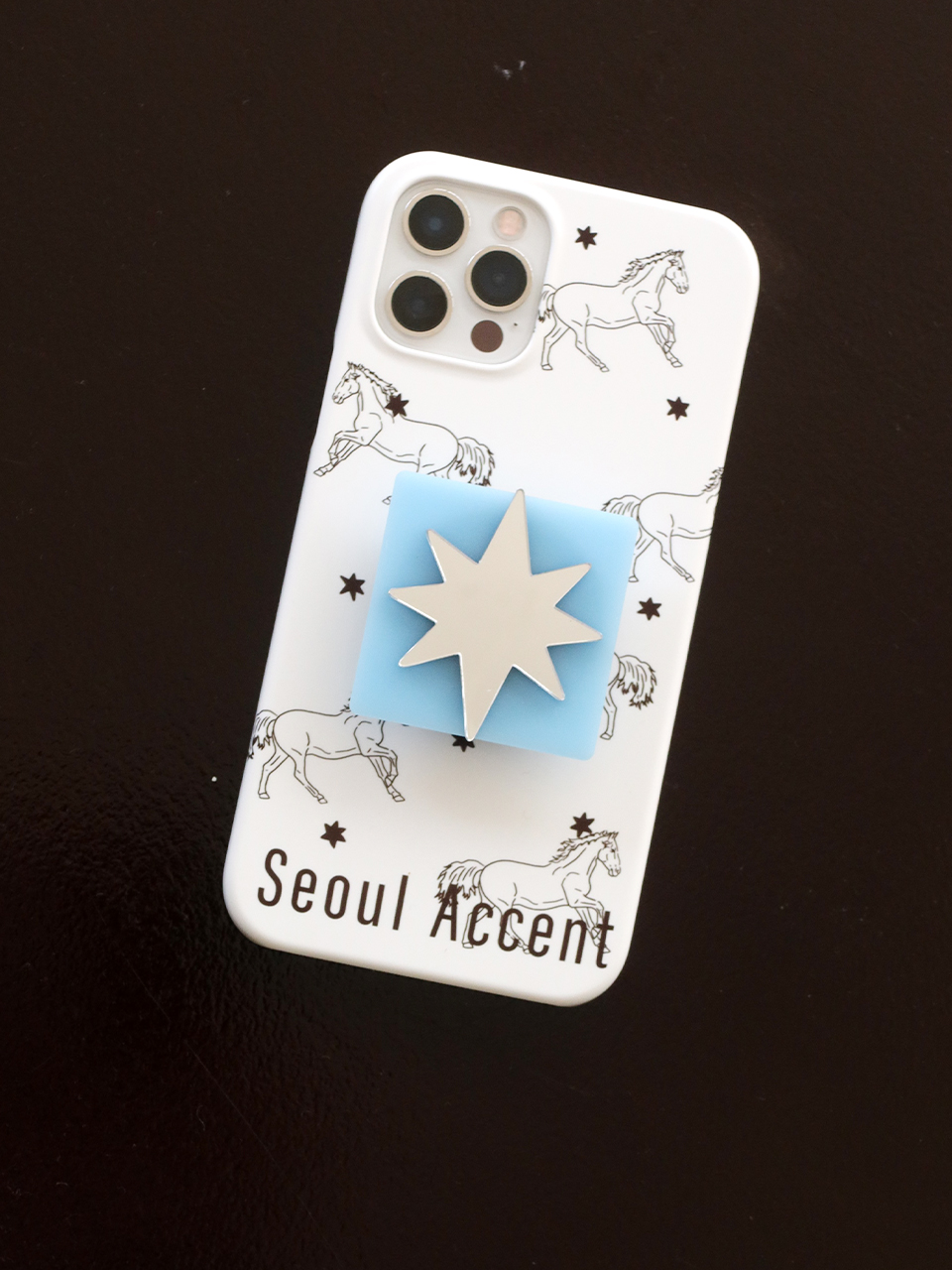 달리는 말의 역동적인 에너지와 별 모티브로 행운을 표현한 디자인입니다.