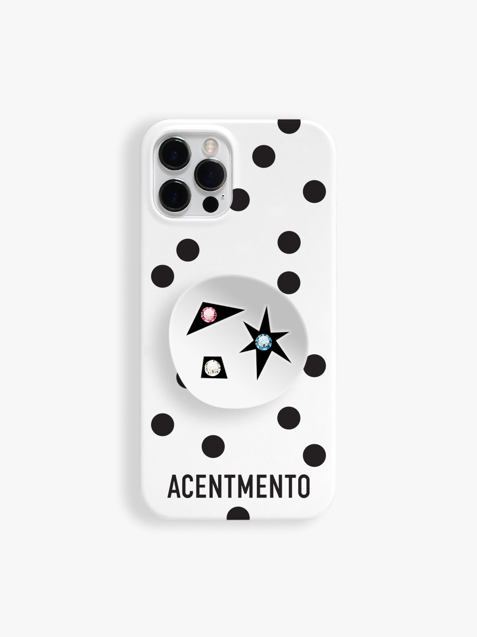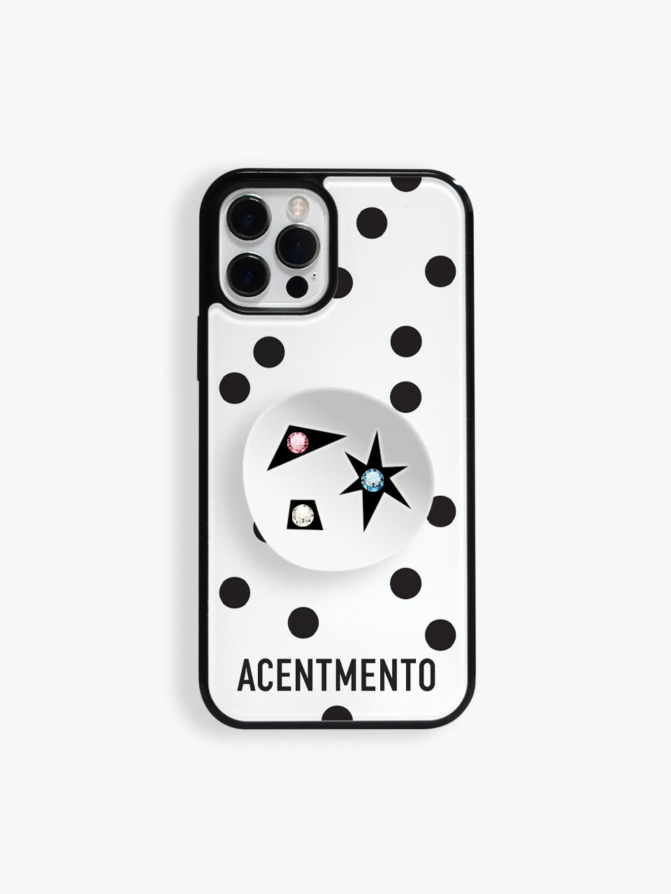 도트 패턴과 반짝이는 거울 속 크리스탈의 조화로