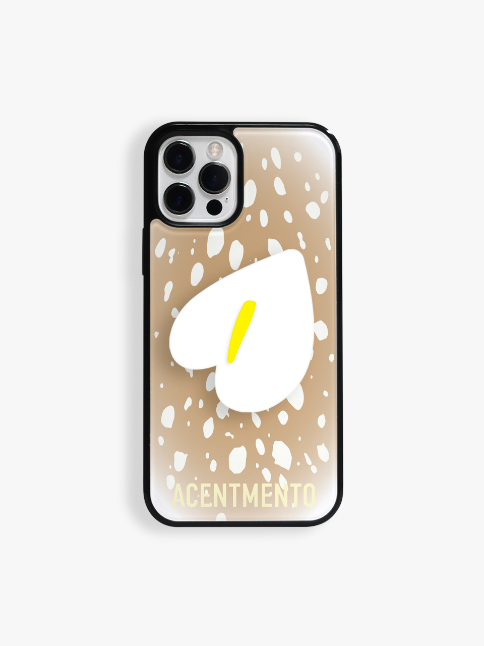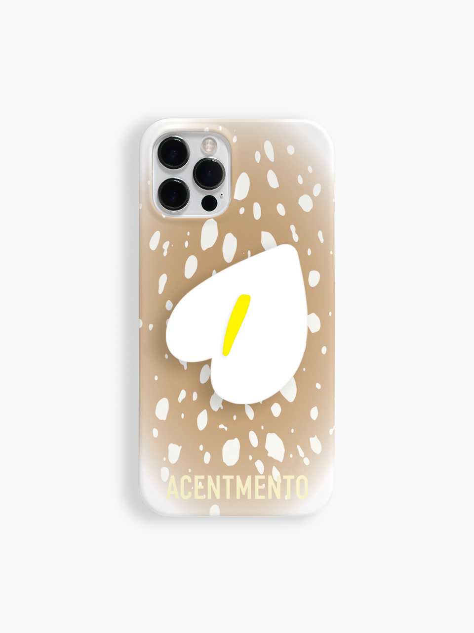 사슴 무늬를 그래픽화한 패턴과 흰 안스리움 플라워톡의 조화로