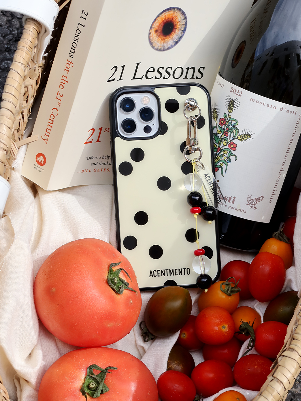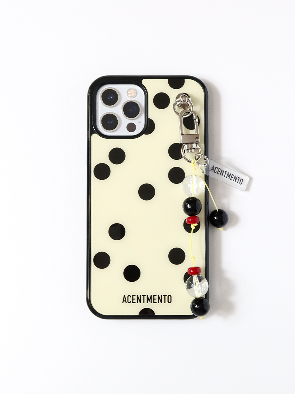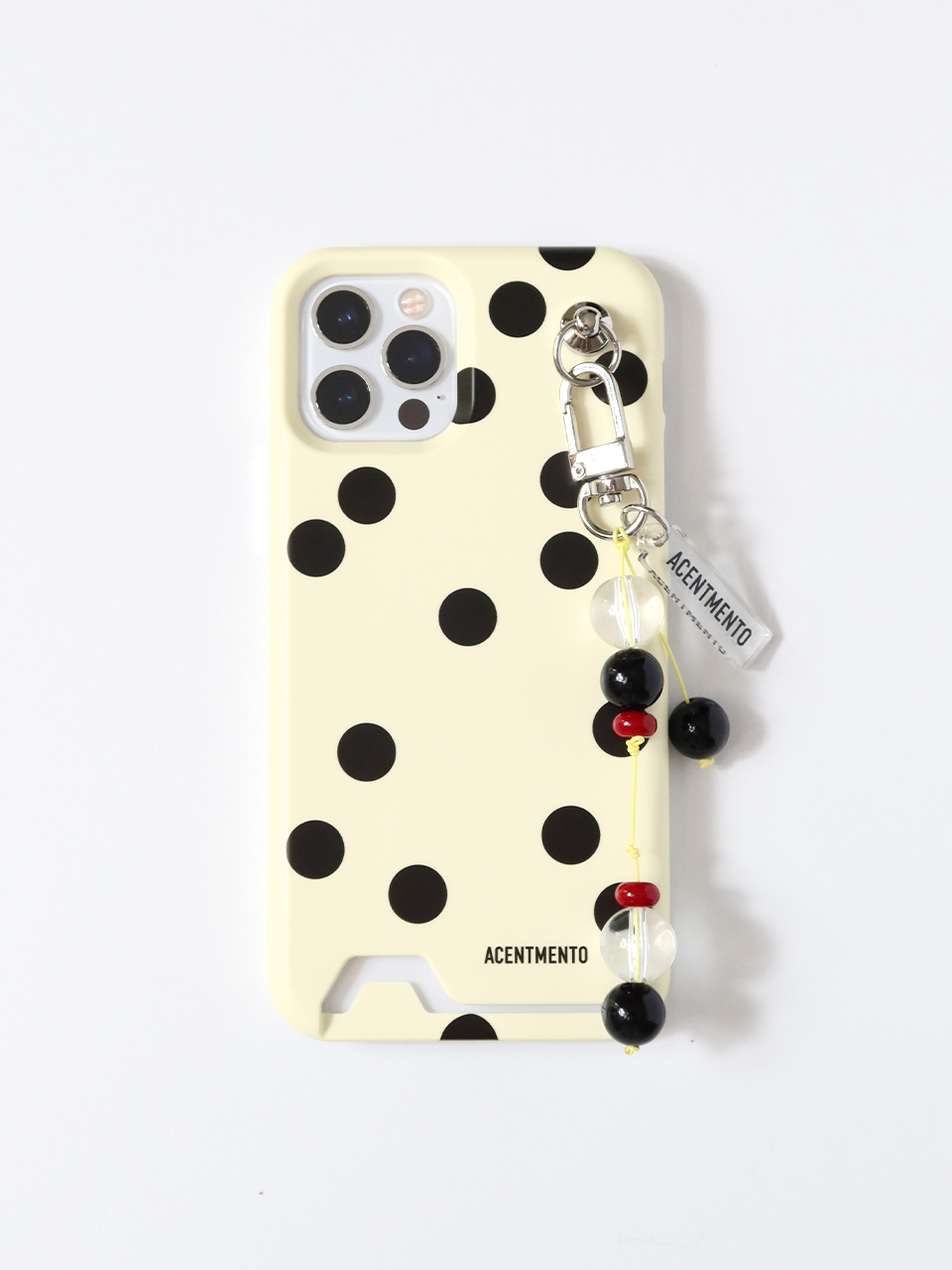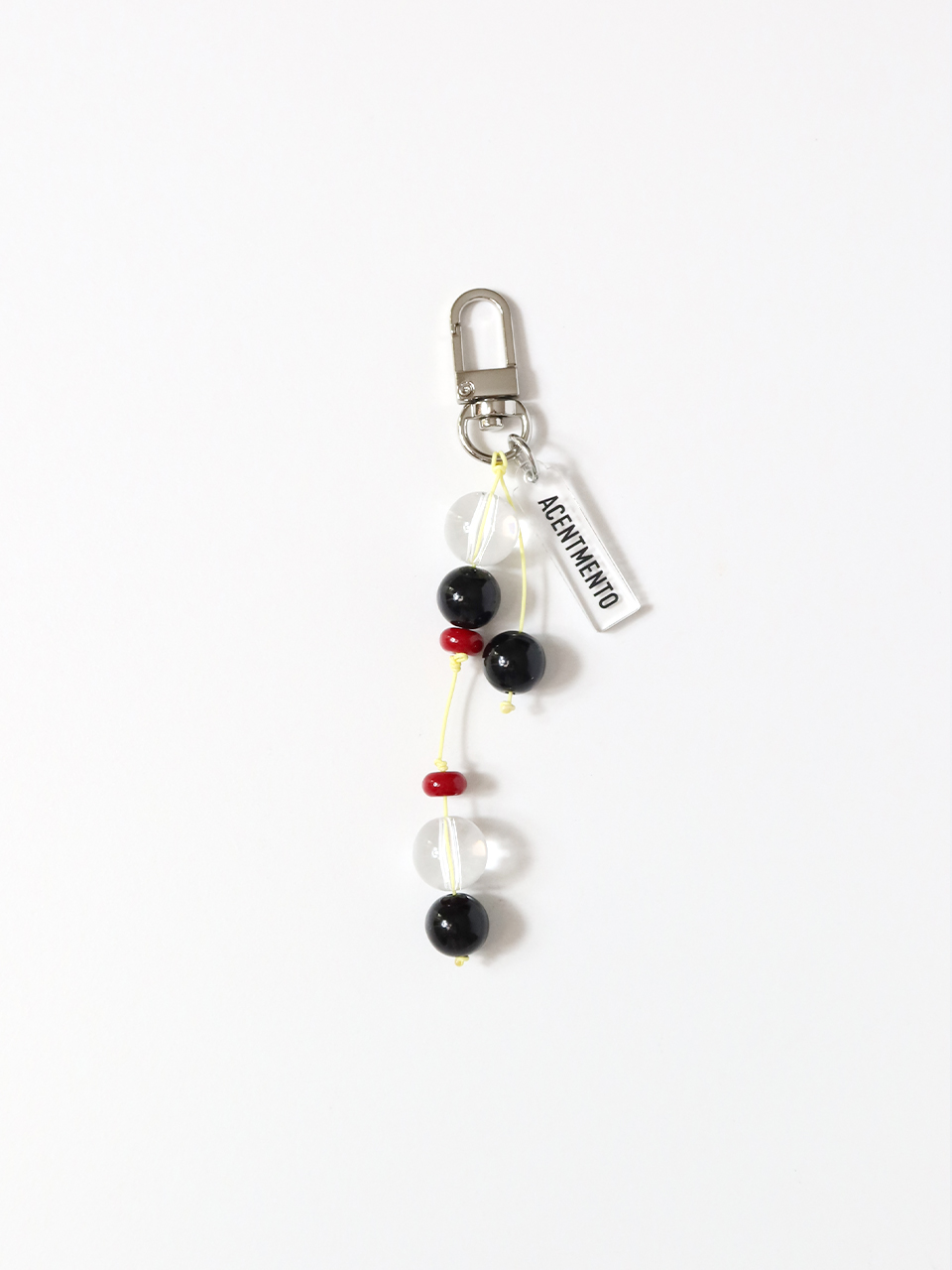 레몬 컬러에 블랙 도트, 그리고 유리알처럼 반짝이는 구슬 키링의 조화로