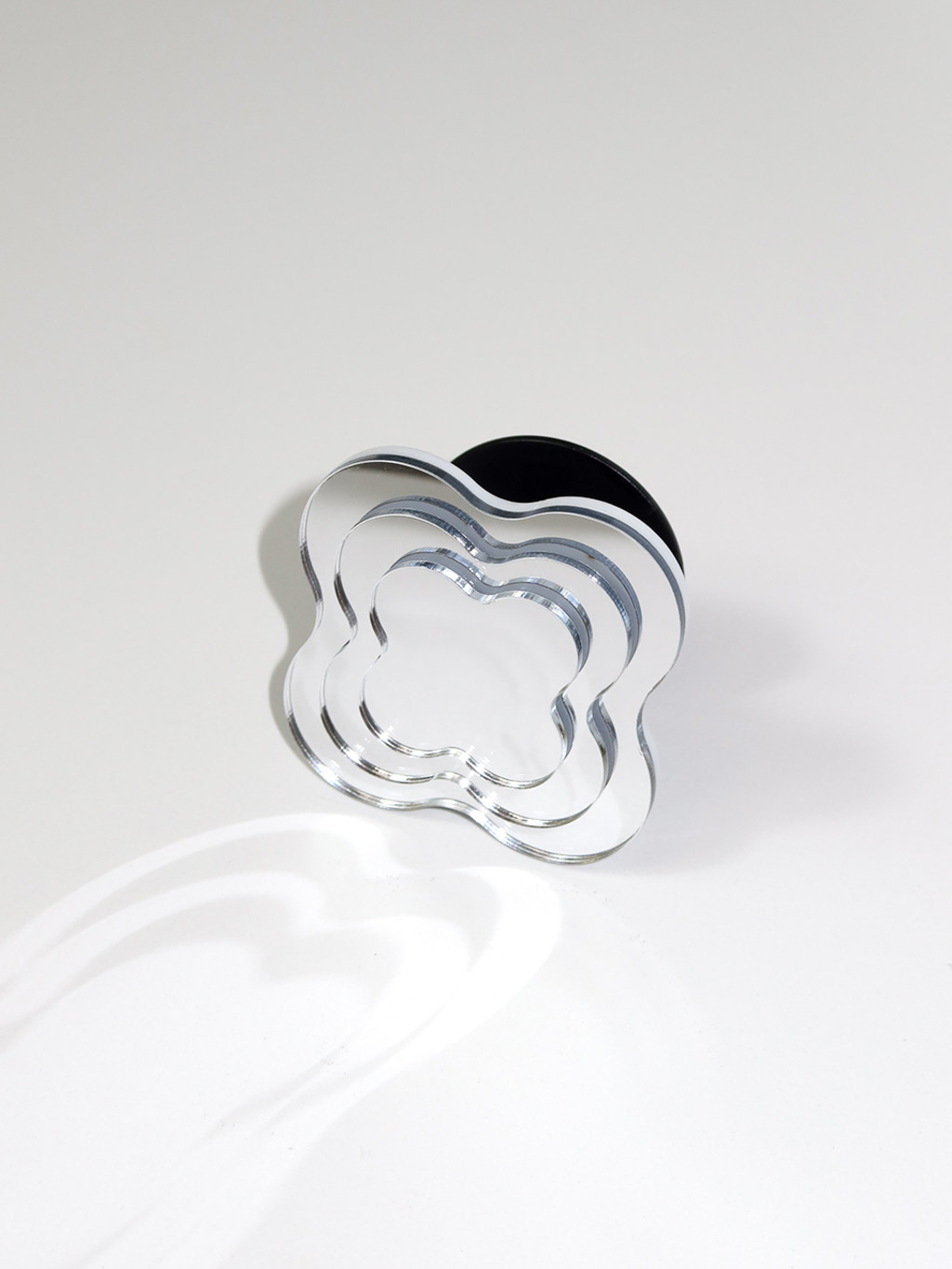 화이트 도트 패턴과 리듬감있는 거울 아크릴톡의 조화로