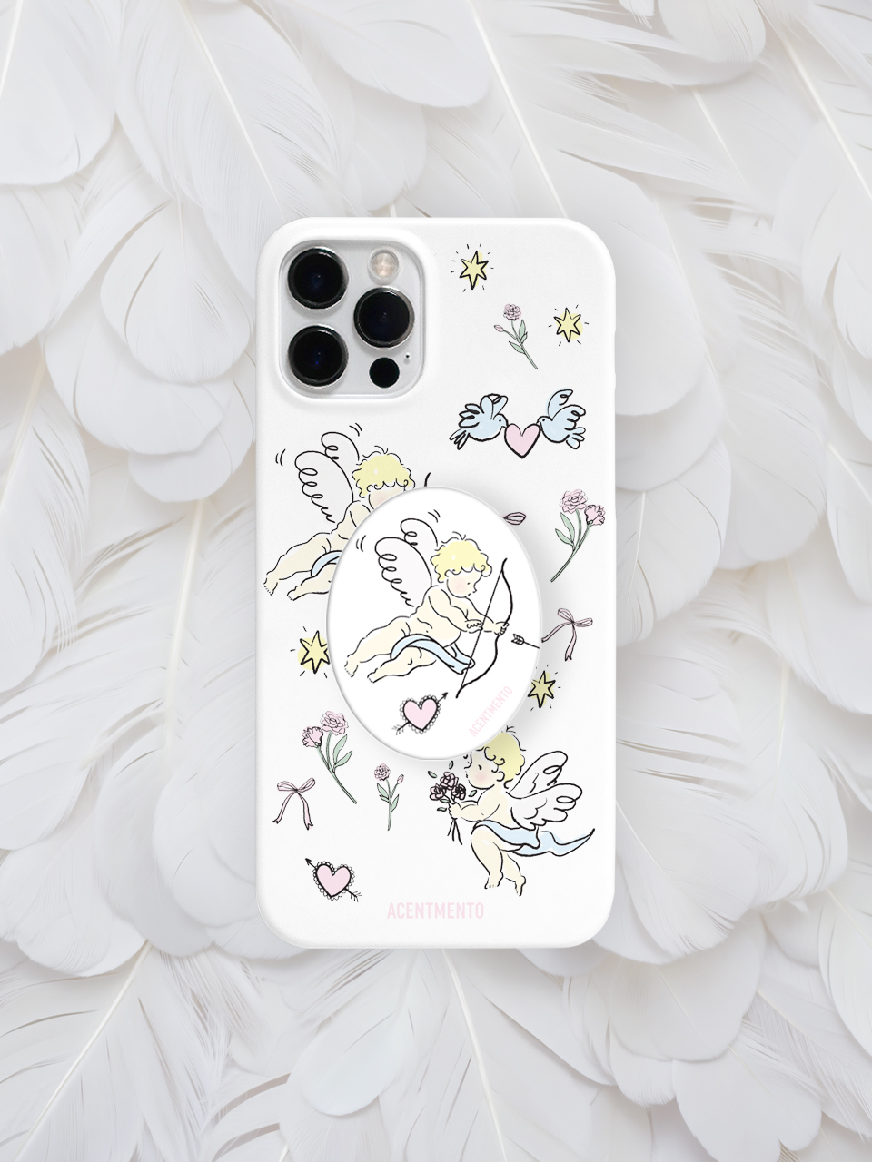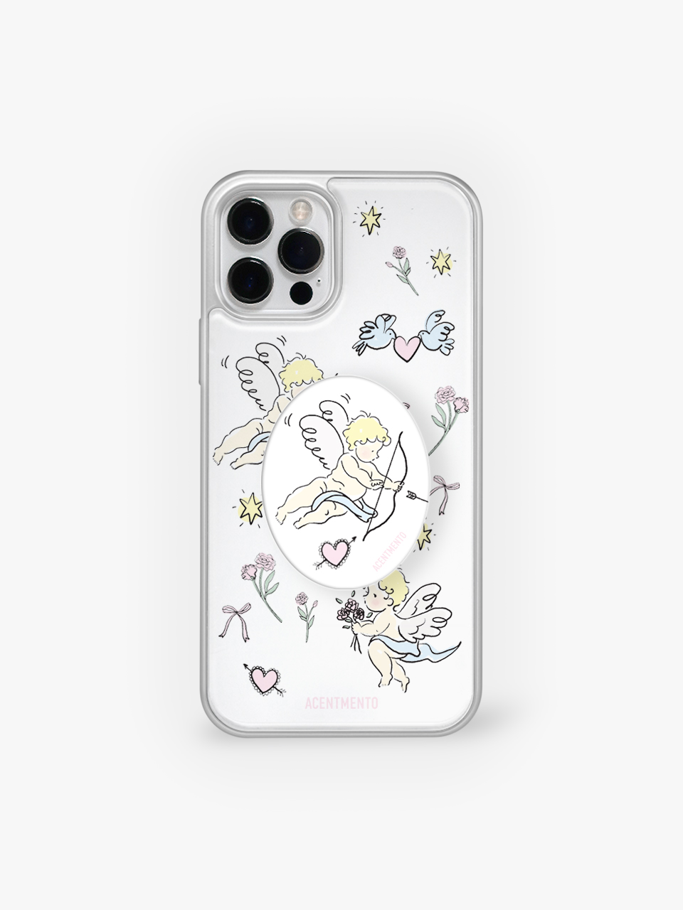 손으로 그린 큐피트와 발렌타인 모티브의 조합으로